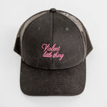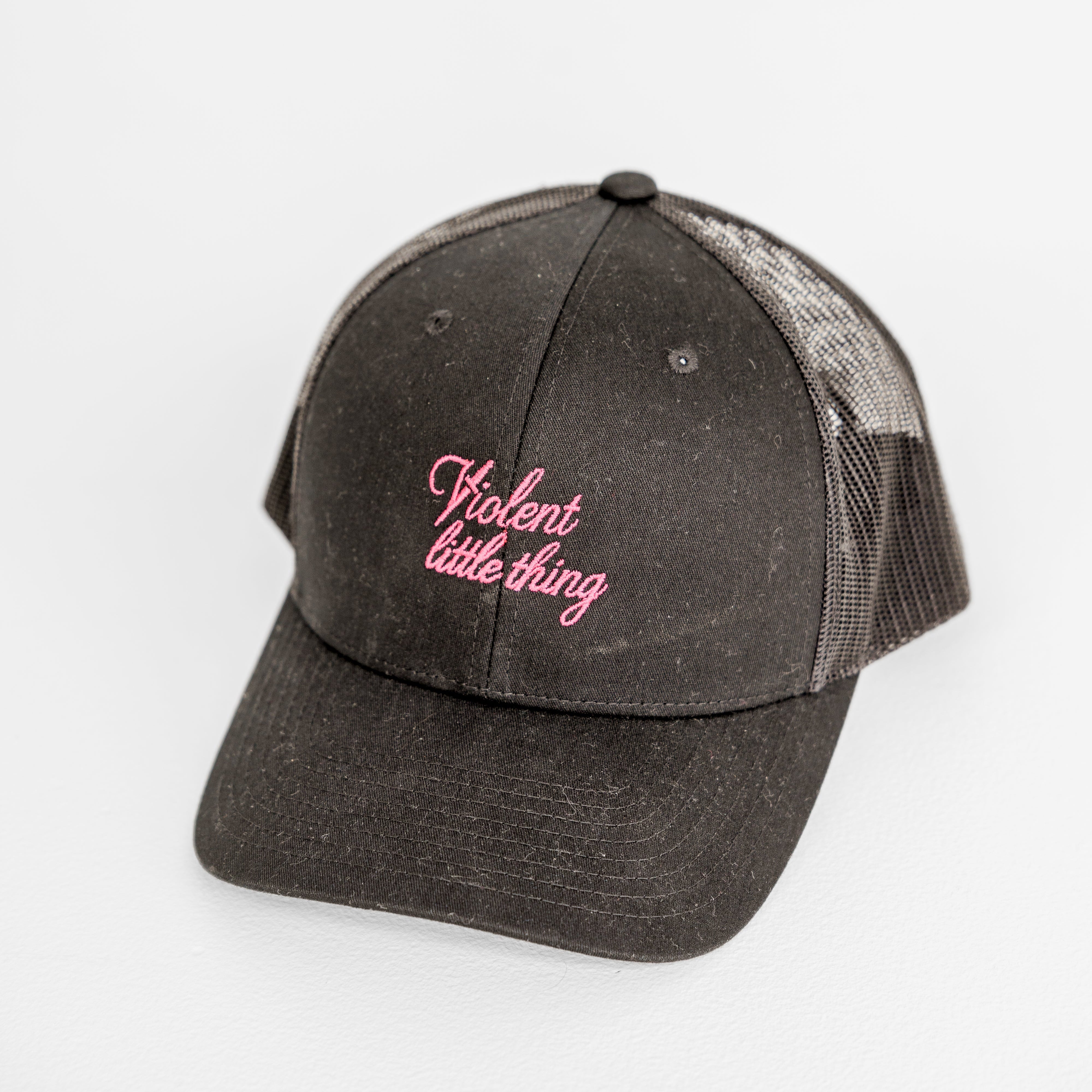 This bold trucker cap features hot pink embroidery that’s soft in script but sharp in meaning. Inspired by a certain dagger-wielding, dragon-bonded icon who was always more dangerous than they gave her credit for. Wear it like armor - or like a warning.